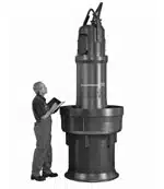 För större (upp till 5m3/s) dränkbara pumpar för exempelvis dagvatten magasin, avloppsreningsverk mm förkommer i olika varianter med pumphjul av kanalhjulstyp eller propellertyp.