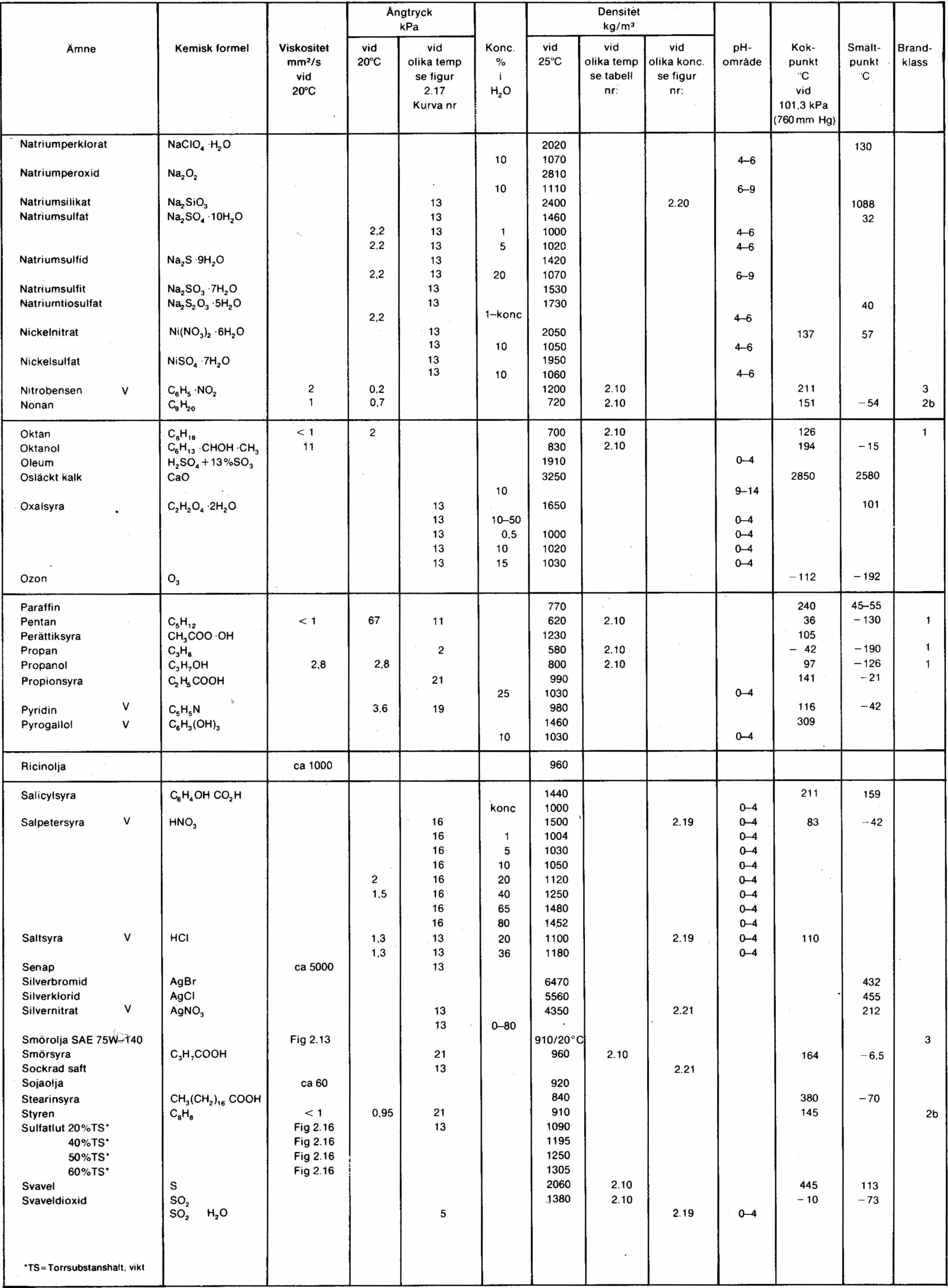 Förklaringar till vätsketabeller återfinns i kapitel 10.8 Vätskeegenskaper, kommentarer till tabellverk.