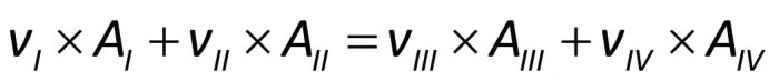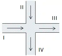 Eftersom ingen ansamling av massa sker vid förgreningen, måste lika mycket massa per tidsenhet strömma ut som in. Med beteckningar enligt figur 11.3 blir