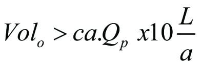 I samtliga fall fortsätter strömningen under tiden to. För att undvika luftinsugning i pump och rörledning måste då en vätskevolym finnas tillgänglig. Vid luftklockor finns vätskevolymen i luftklockan och för övriga fall måste magasinet eller pumpsumpen ges motsvarande volymökning. När flödesbehovet eller tillrinningen är försumbar = ogynnsammaste fall, kan medelflödet under stoppcykeln uppskattas till ca 2/3 av max flödet. Delmagasinsvolymen = Volo [m3] mellan stoppsignal och flödes-stopp blir vid uppbromsningstid to [s] enligt tidigare: