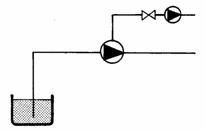 Figur 3.43 Pumpen placerad under nedre vätskeytan (tillrinningshöjd)
