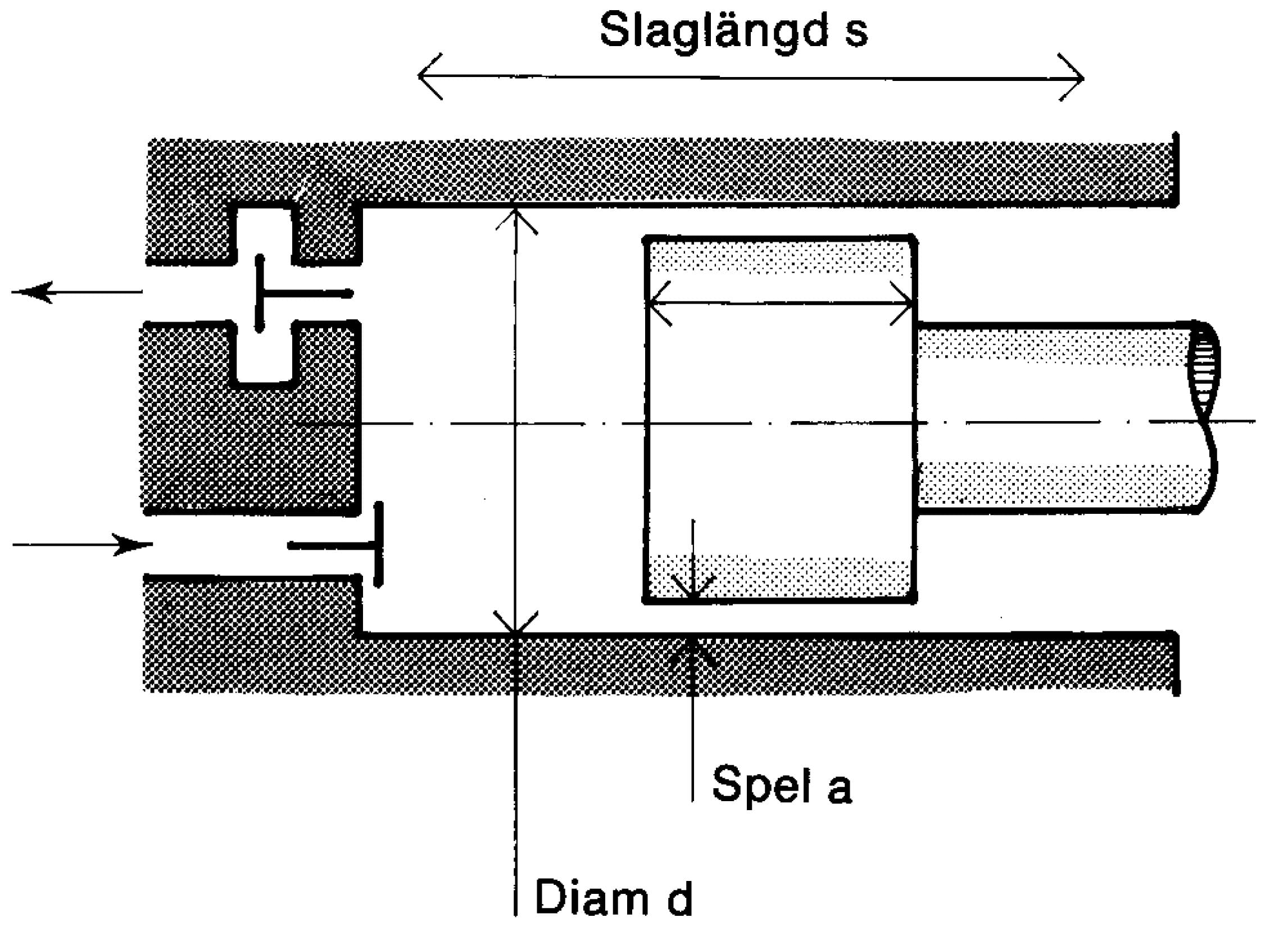 En jämförande teoretisk betraktelse för förträngningspumpar kan göras, om den mängd olika konstruktionsprinciper som finns, överföres till en ”ekvivalent” pump. Därvid skall de dimensioner, som bestämmer läckage, glidfriktionsförluster och ev övriga förluster, omräknas till att motsvara dem för en ekvivalent pump med samma prestanda och samma förluster. Den ekvivalenta pumpen -figur 3.14- studeras sedan beträffande förlusternas storlek. Som åskådningsexempel för en ekvivalent pump har här en kolvpump valts för att undvika att behandlingen blir alltför abstrakt.
