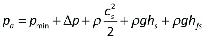 Det lägsta trycket i pumpen bestäms således dels av yttre faktorer som trycket på den nedre vätskeytan (oftast atmosfärstrycket) pa, geodetiska sughöjden hs och strömningsförlusterna i sugröret Δhfs, dels av faktorer, som sammanhänger med pumpens konstruktion. De senare utgöres av den lokala trycksänkningen Δp och strömningshastigheten vid sugstutsen cs. För att undvika kavitation gäller det att se till att pmin är större än vätskans ångbildningstryck på.