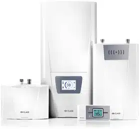 Clages sortiment omfattar flera olika modeller beroende på behov och förutsättningar (önskat antal tappställen, beräknad vattenförbrukning och hur mycket elström som finns till förfogande).